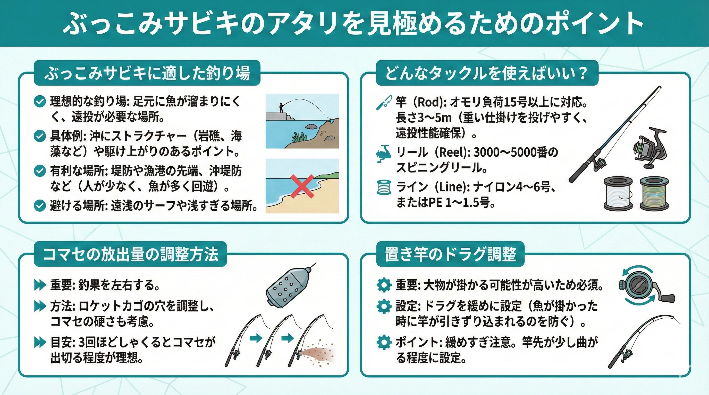 一方で、遠浅のサーフや浅すぎる場所では、ぶっこみサビキの効果が薄れるため避けるのが賢明です。