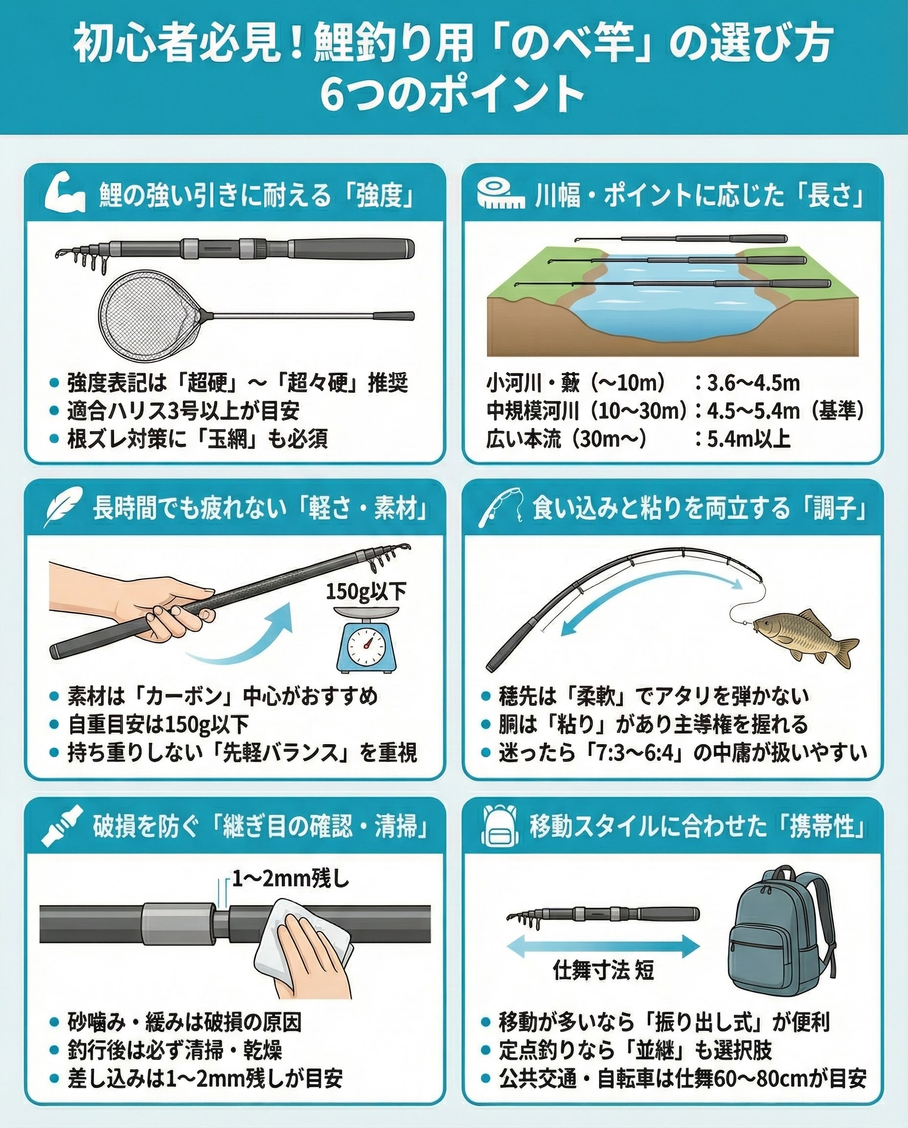 1. 【初心者必見】鯉釣りに最適なのべ竿の選び方