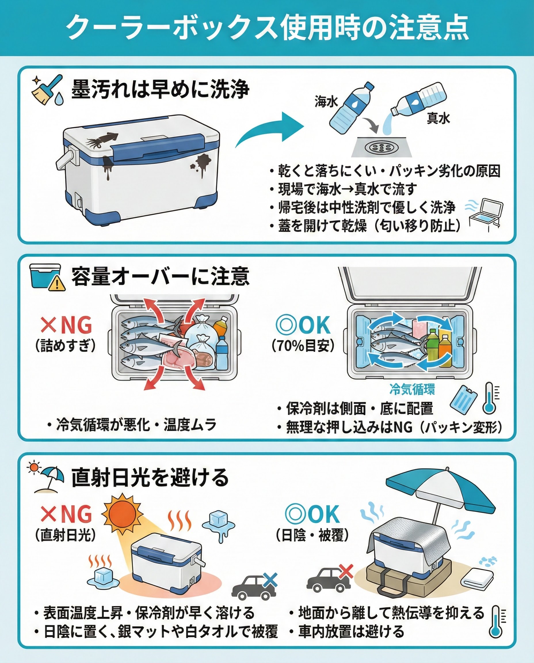 クーラーボックス使用時の注意点