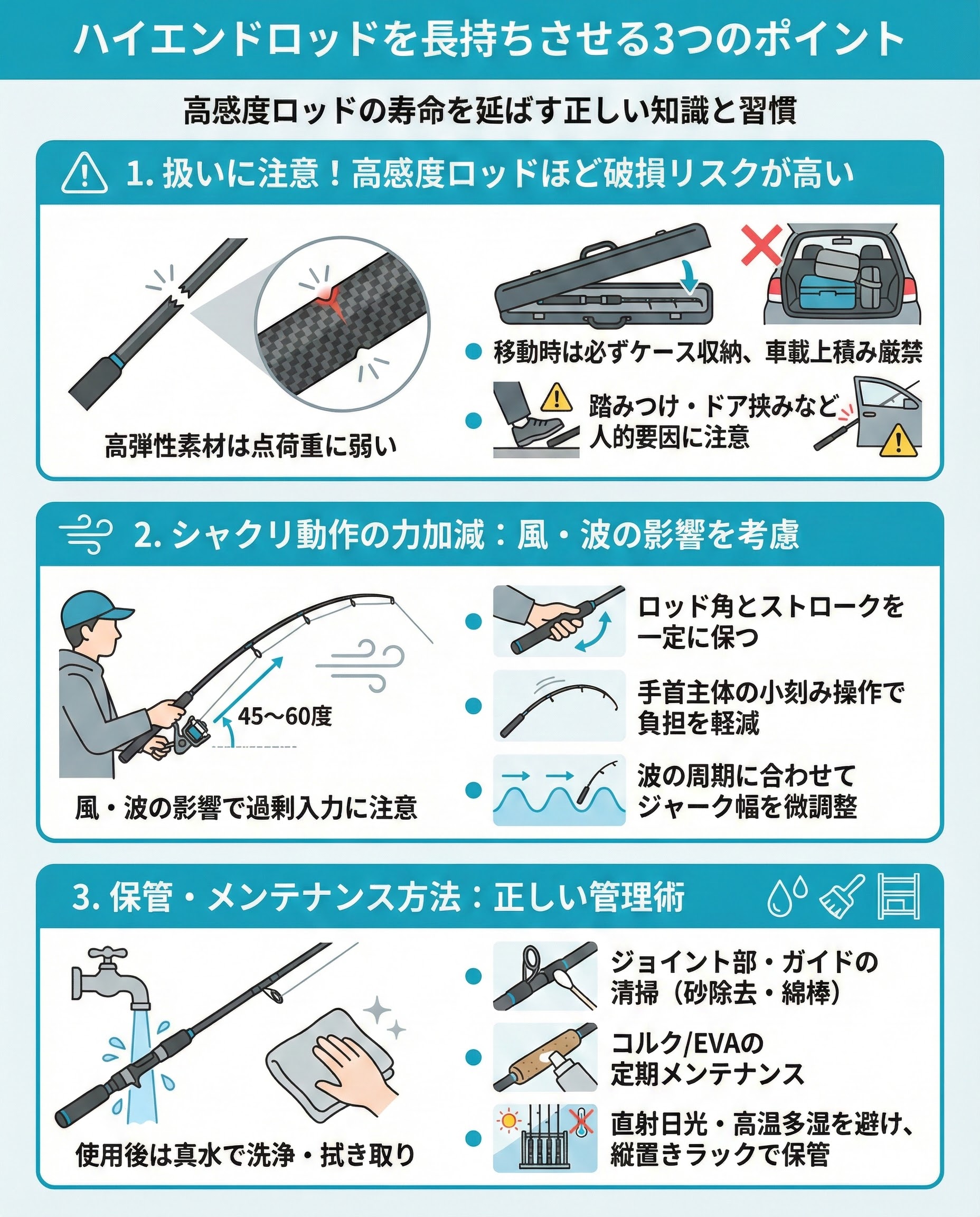 扱いに注意!高感度ロッドほど破損リスクが高い