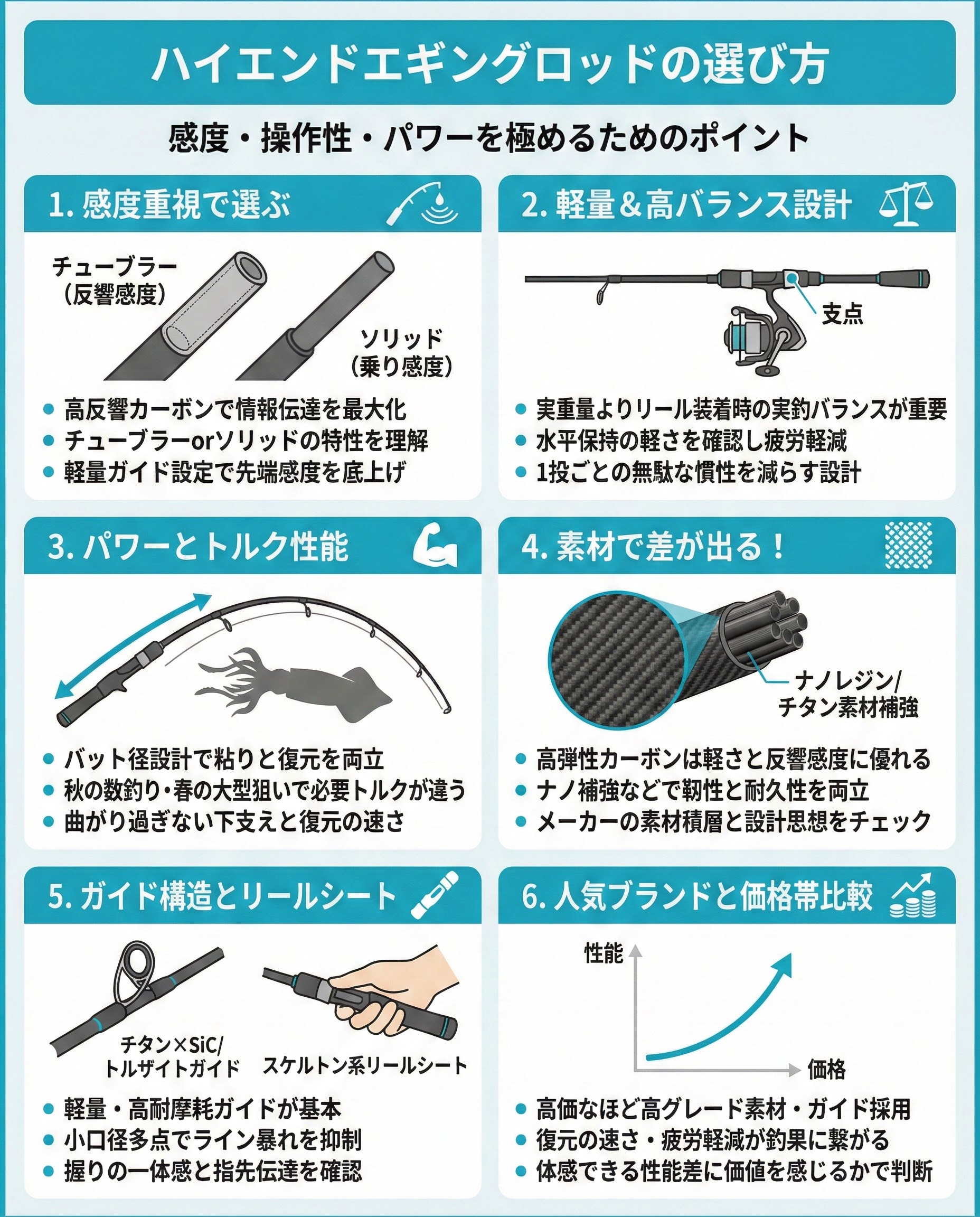 「わずかなアタリも逃したくない」「軽くて高感度な1本に乗り換えたい」──そんな上級者の悩みと“次のステップへ進みたい”気持ちに応えるため、ハイエンドエギングロッドの選び方とハイエンドおすすめ12選を解説します。