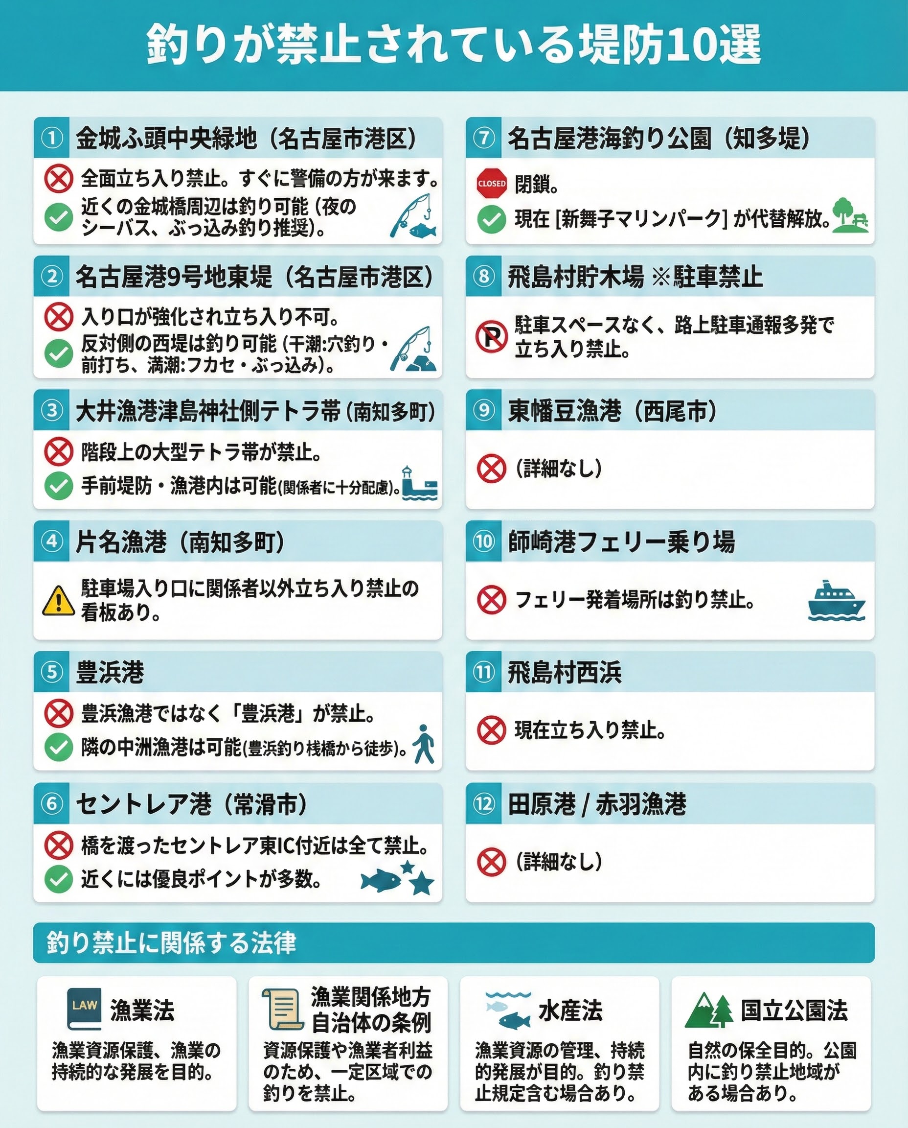 この記事では、名古屋港や知多半島など、釣りが禁止されている堤防を紹介します。