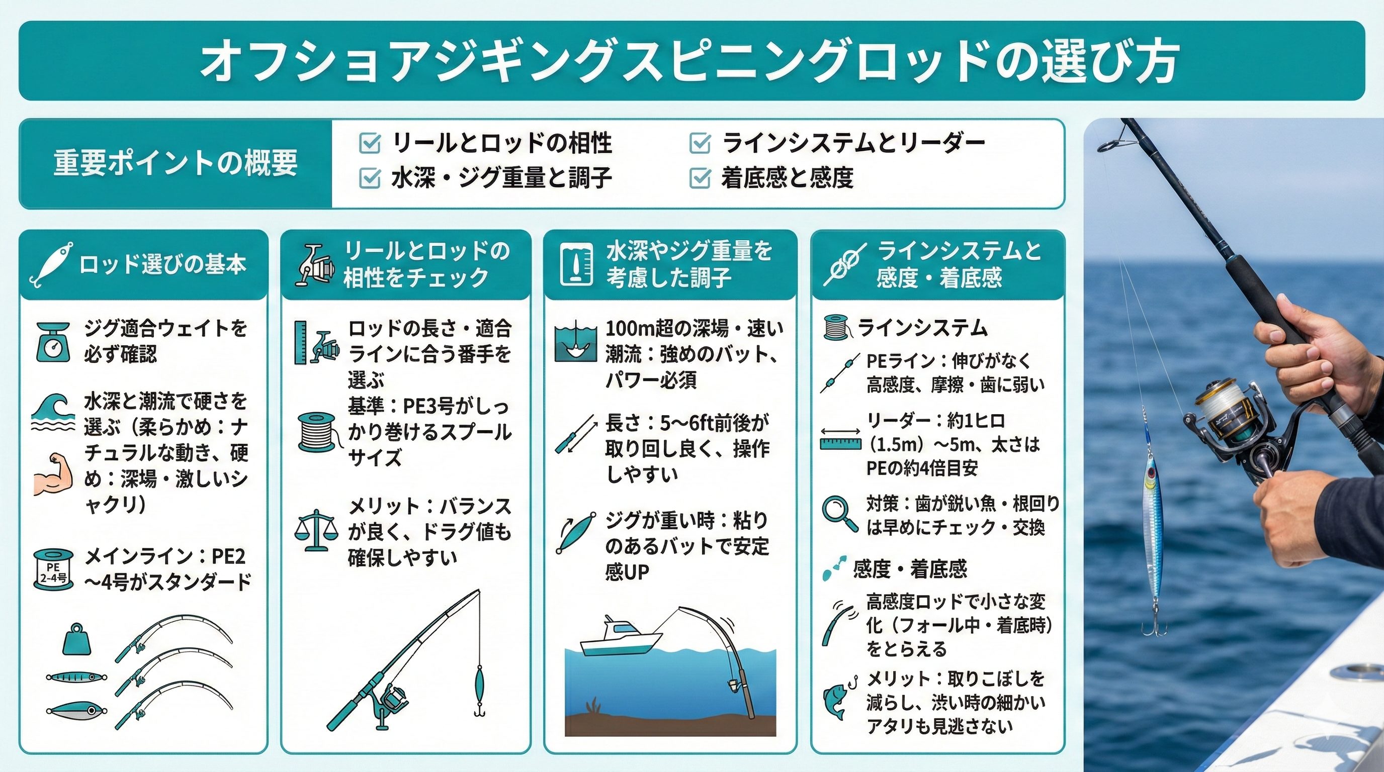 はじめてのオフショアジギングは、トラブルが少なく手返しの良いスピニングタックルが安心。下の表だけ見れば、選び方~おすすめ機種まで一気に把握できます。