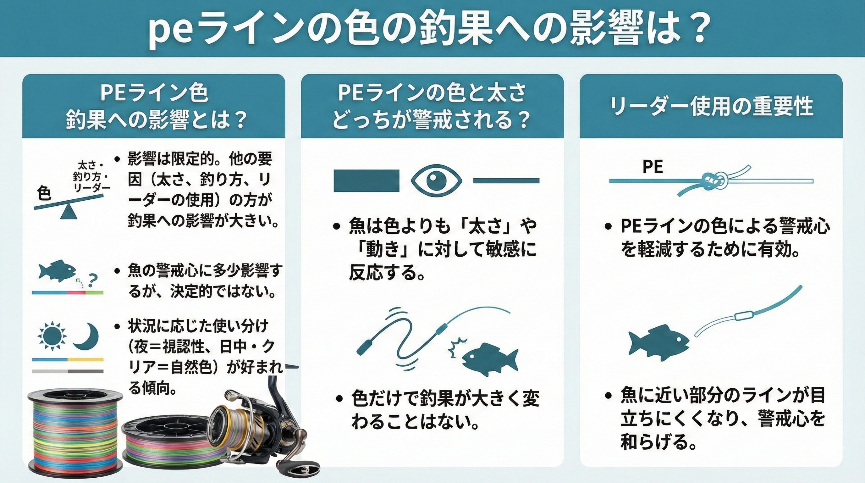 PEラインの色は、魚の警戒心に影響を与えることがあります。