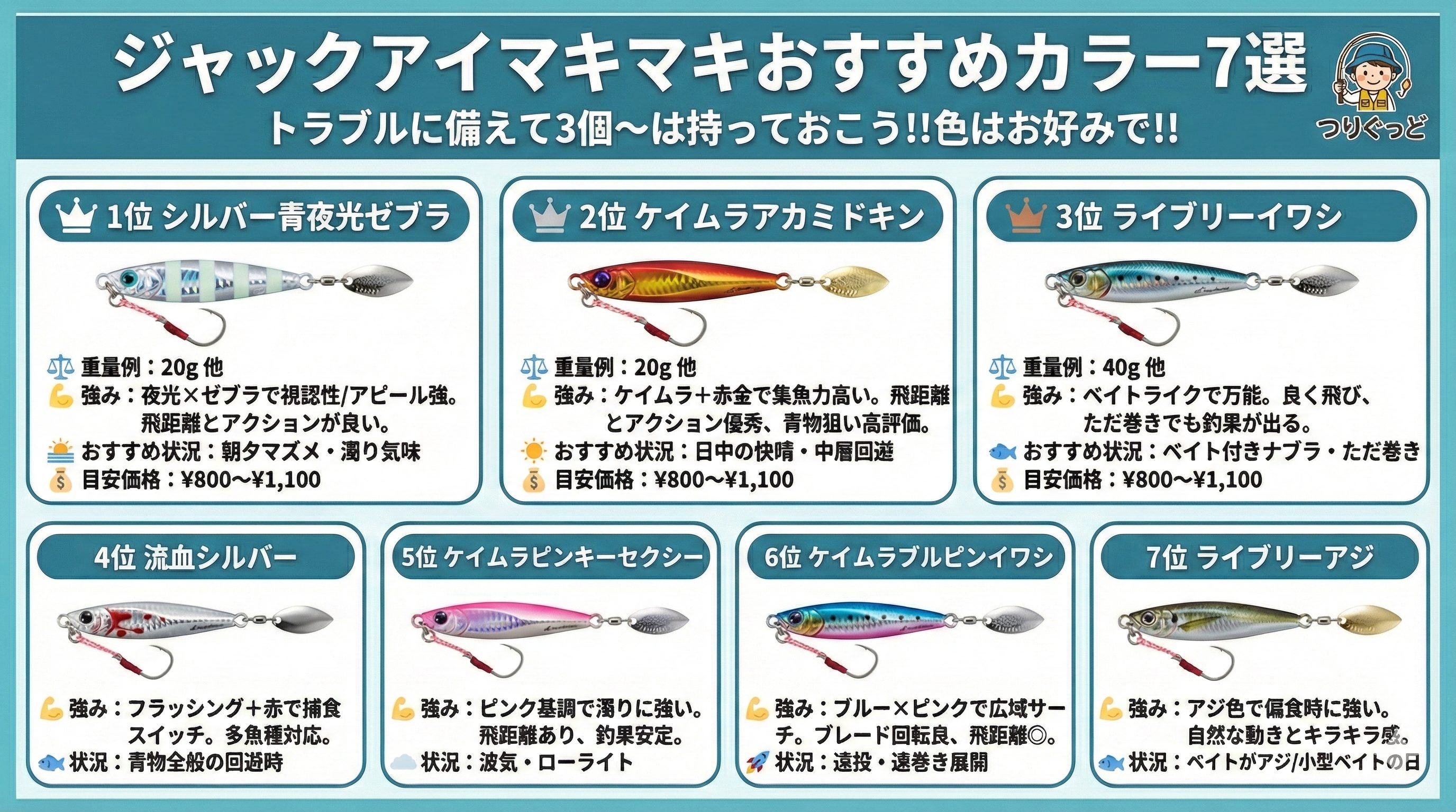 この記事では、実際に釣れているジャックアイマキマキのおすすめカラー7選をランキング形式で紹介します。