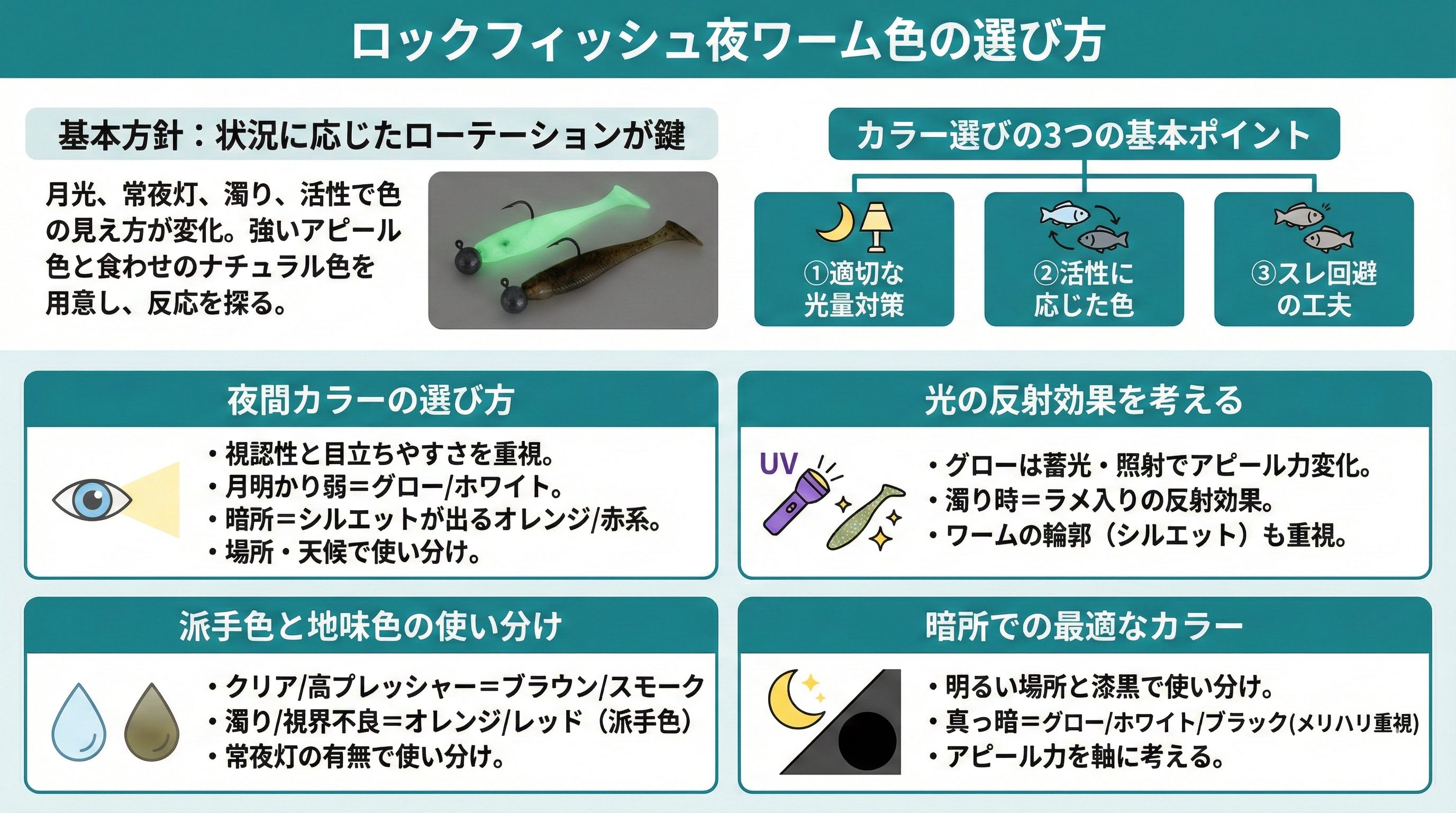 ロックフィッシュ夜ワーム色の選び方