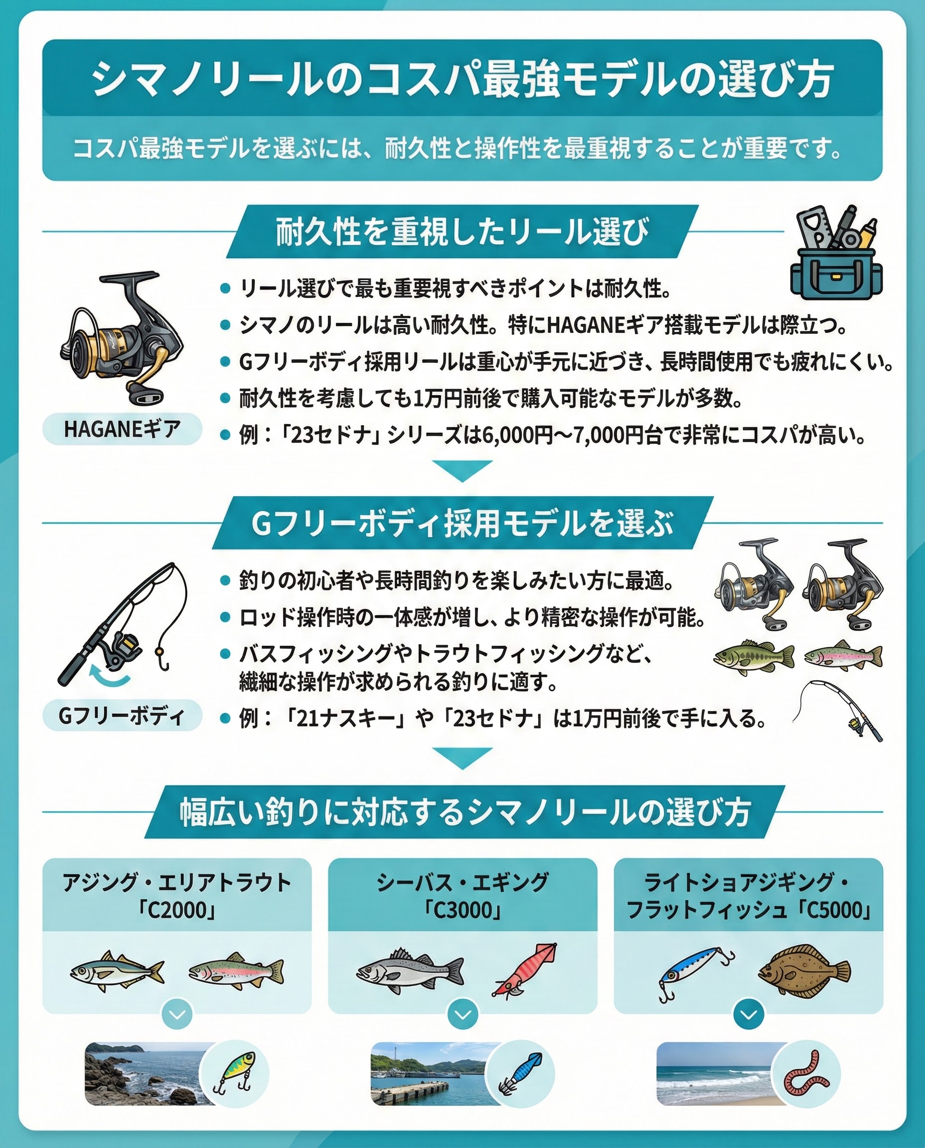 ここでは、特にコストパフォーマンスに優れたシマノリールの選び方について詳しく解説します。