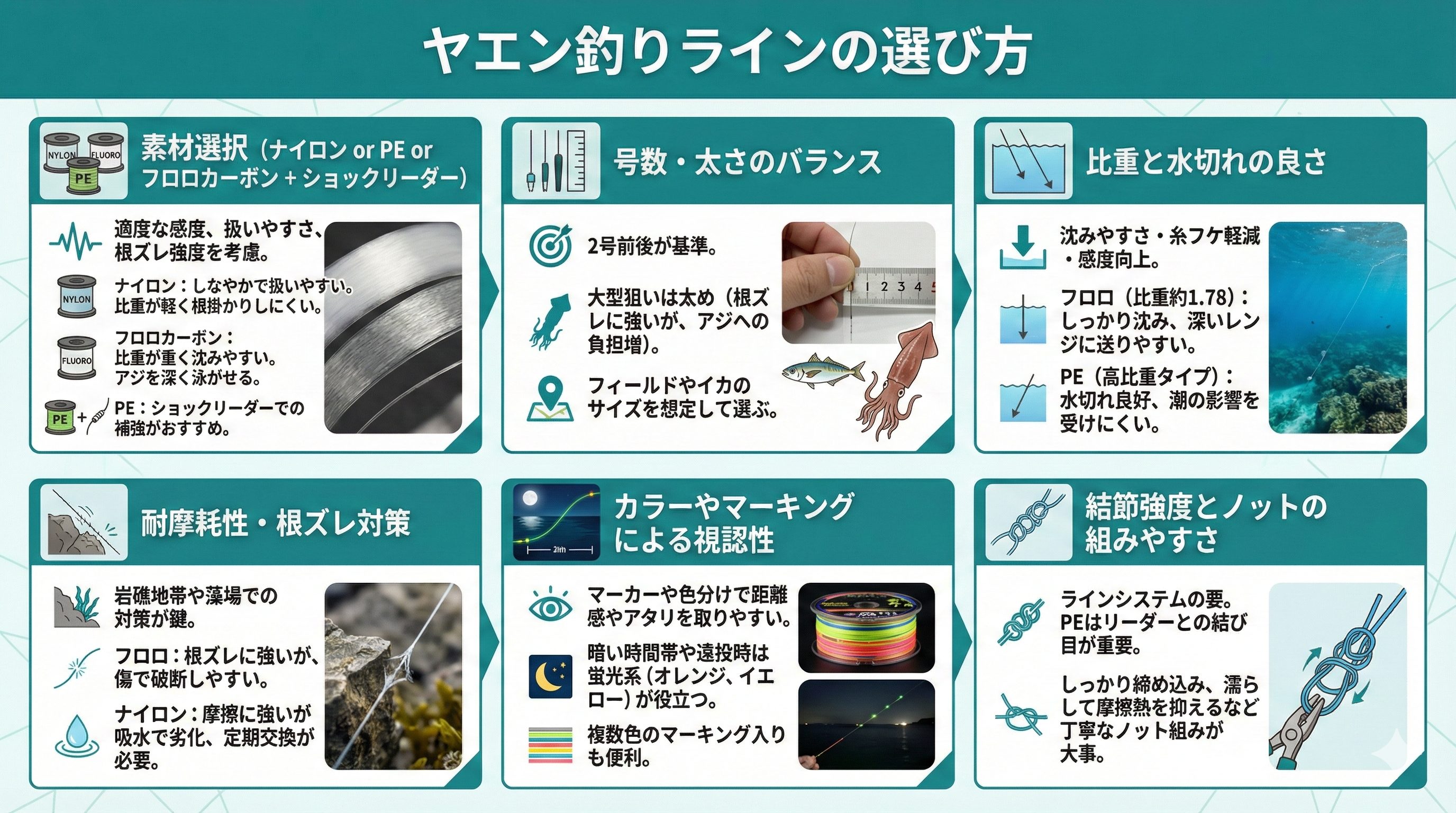ヤエン釣りではラインの選び方が勝敗を左右するといっても過言ではありません。どの素材や号数を選ぶかでアジの動きや感度、根ズレ対策まで大きく変わります。ここでは、ライン選びの要点とおすすめ商品を簡潔に解説します。