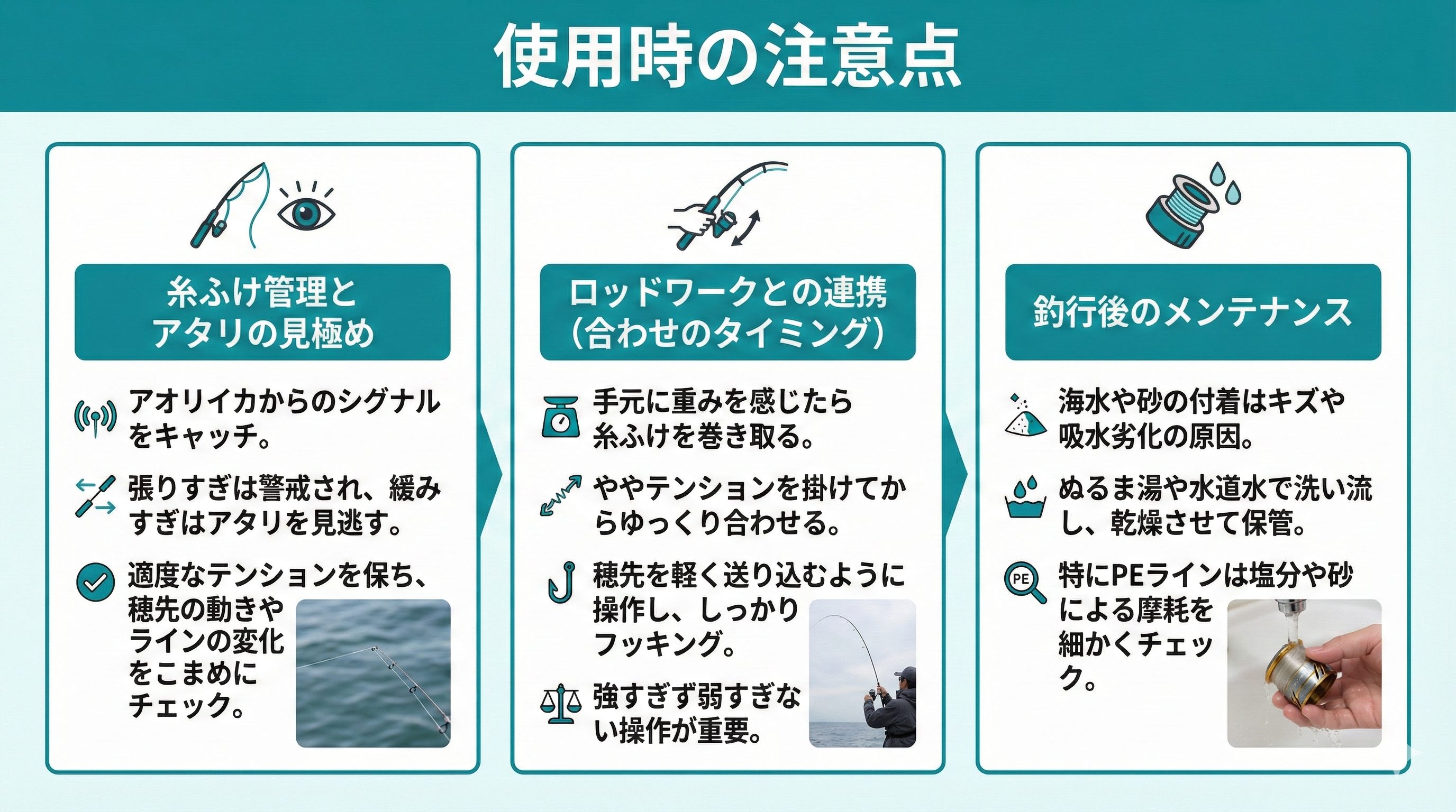 糸ふけ管理とアタリの見極め